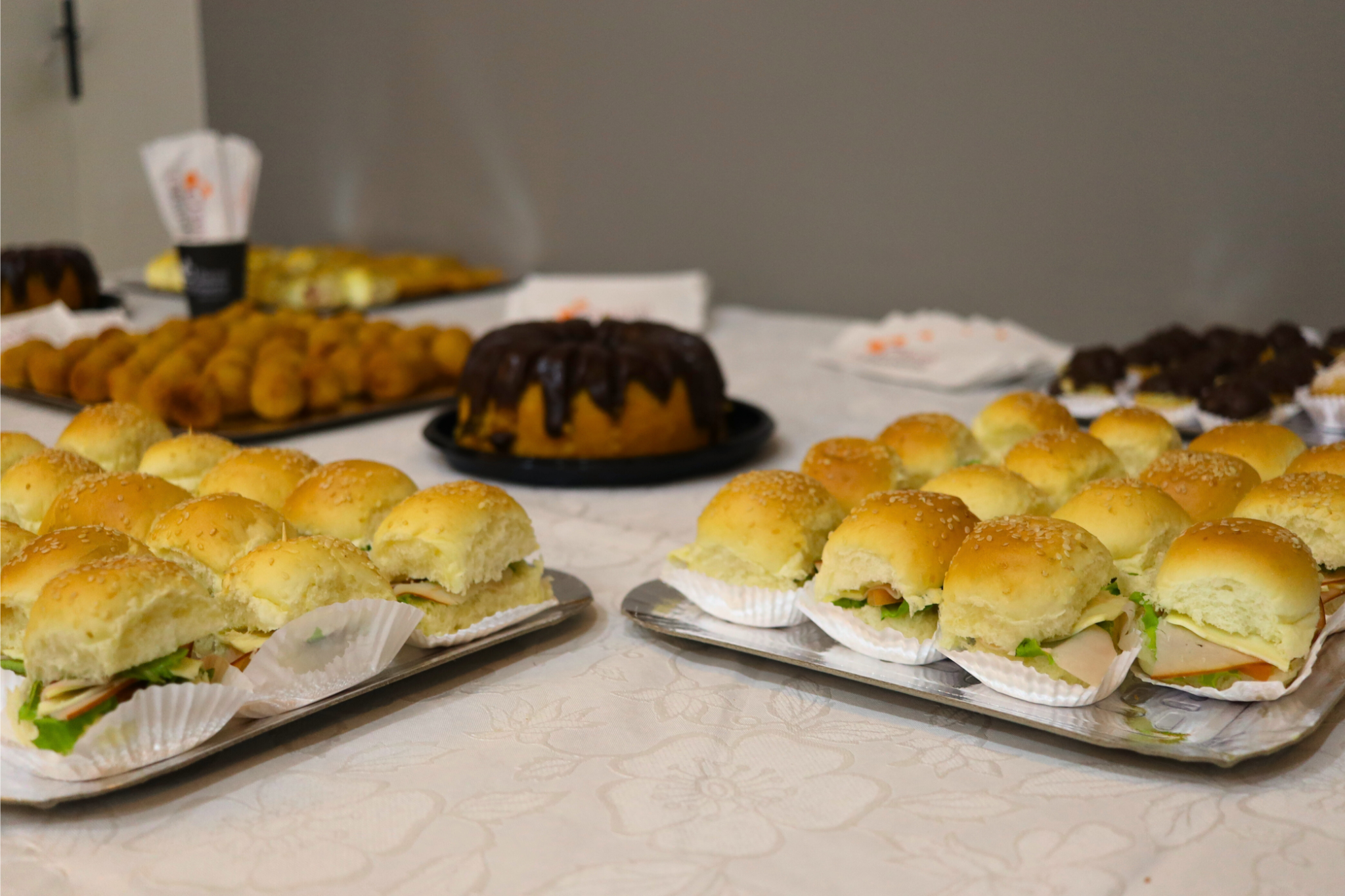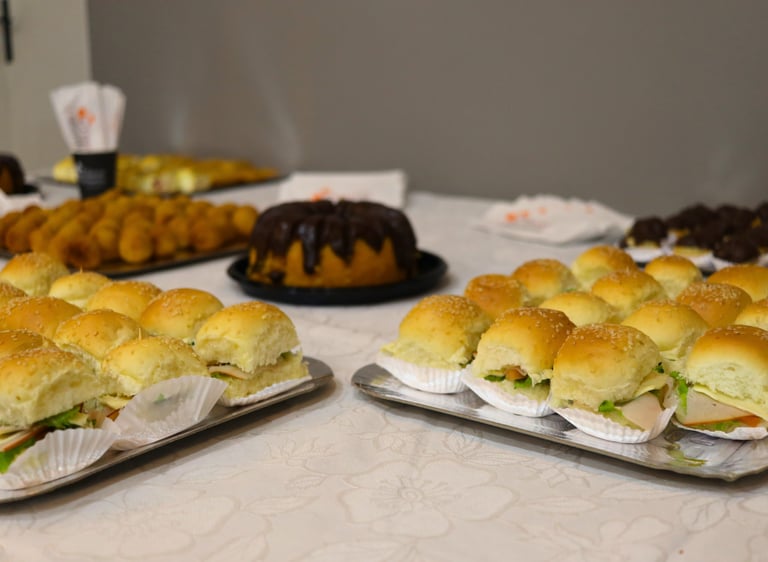 • Mini sanduíche: salada, salame e mussarela/salada, peito de peru e queijo branco