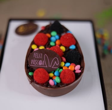 Personalize seu ovo com o recheio e os enfeites que desejar.